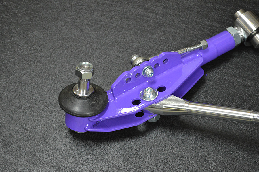 コントロールアームのブッシュをピロボール化にすることによりホーシングのムダな動きを抑え、ジャダーを防止します。更に、ホーシングがスムーズに可動する事により、繊細なサスペンションセッティングが可能になり、ドライビング性能を大きく向上させることにつながります。