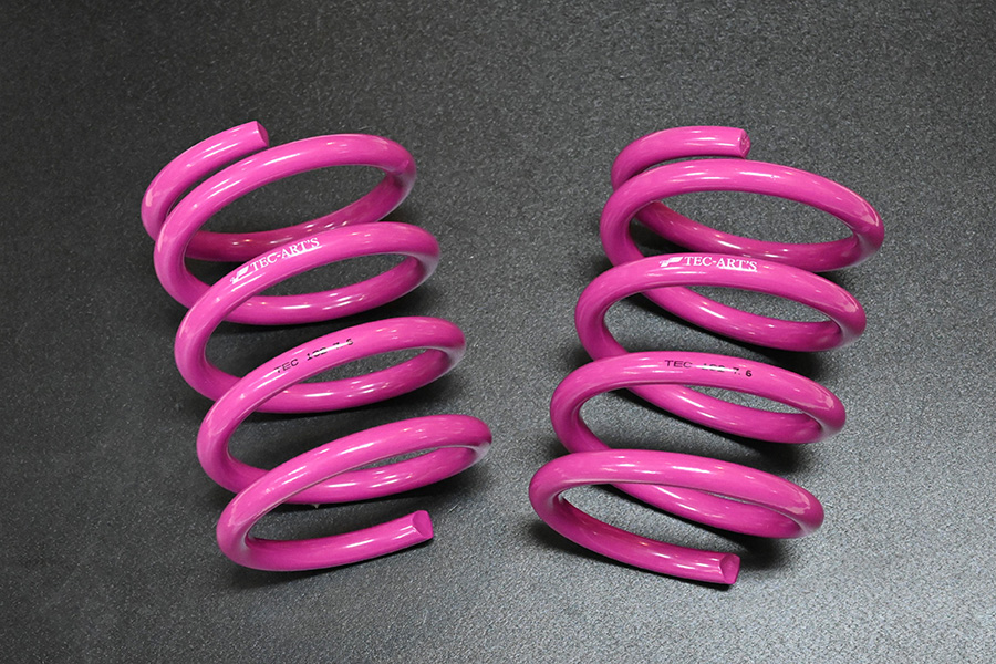 AE86のサスペンションはフロントがストラット、リアはホーシングといった形状の為路面からの衝撃がダイレクトに伝わります。その衝撃をしなやかに吸収し路面追従性を向上させる、まさにAE86の為に設計したコイルスプリングなのです!!